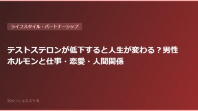 ライフスタイル・パートナーシップ テストステロンが低下すると人生が変わる?男性ホルモンと仕事・恋愛・人間関係